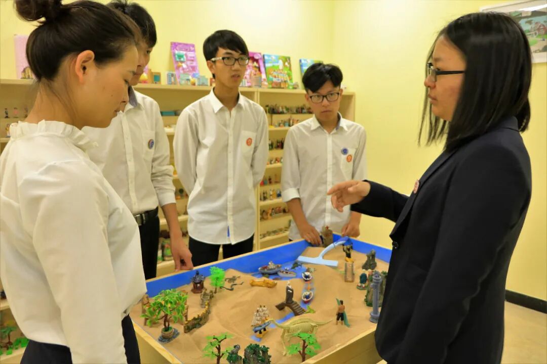 沙盘室共有1800件标准沙具,个体沙盘和团体沙盘各1个。沙盘游戏又称箱庭疗法,是指员工在心理咨询师的陪伴下,从沙具架上自由挑选沙具,在盛有细沙的特制箱子中进行自我表现的一种心理治疗的方法。