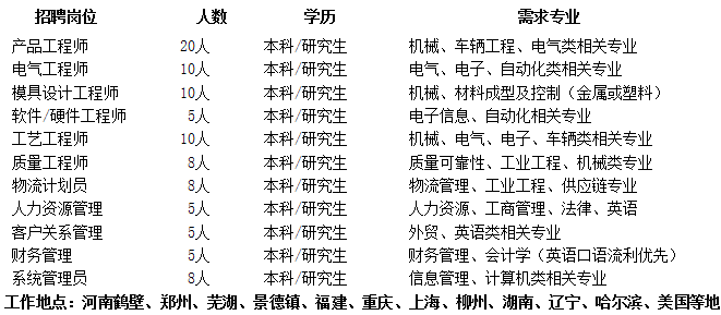 目前,公司已在中国、美国、墨西哥、欧洲等国家设有23家分公司和36个办事处,客户遍及全球。2017年实现销售收入72亿元,现有中外员工15000余人。公司主要生产经营汽车用连接器、电器保险盒、汽车电子产品、电线束、线束专用设备、新能源汽车产品共6大类 10000 多个品种。主要配套全球著名OEM等世界500强企业,并覆盖民族品牌汽车。