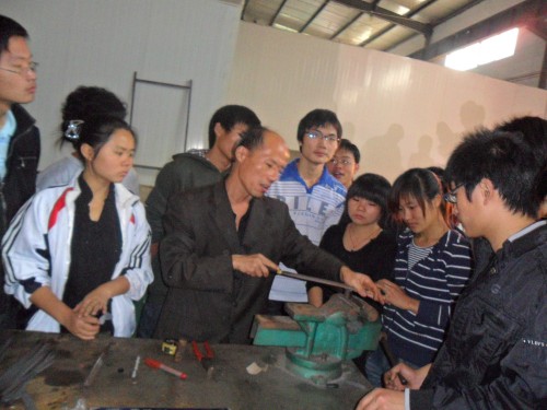 金工实习已经三天了,四个小组分别同时进行钳工、焊工、数控、普车实训,同学们热情高涨,认真的听着老师的讲解并积极的按照老师的要求去操作,同学们都对此次实习充满了信心,虽然钳工的同学们比较累,可没有一个同学甘于落后,都你追我赶比谁的铁锤最先完成,目前金工实训正火热进行中!(李明 供稿)