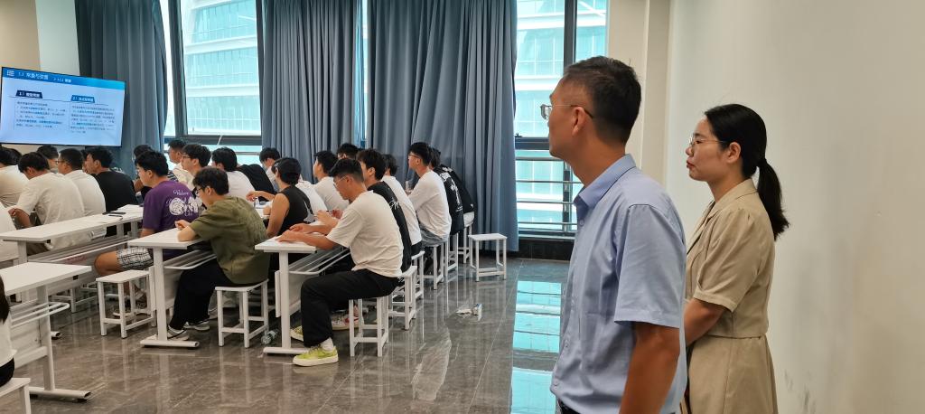 (文/吴晓蕊 图/吴晓蕊)2024年9月9日上午,beats365唯一官方网站组织开展秋季学期开学第一天的教学检查活动。为保障新学期课堂教学工作正常有序开展,beats365唯一官方网站院领导、教学督导组、辅导员们深入教学一线开展教学巡查工作。此次巡查对新学期教学安排、师生上课情况、课堂教学秩序、教学环境、教学设备运行等方面进行了全面巡查。