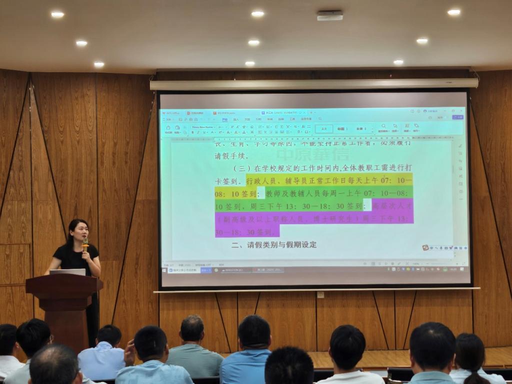 为确保新学期各项工作顺利有序开展,明确工作目标,凝心聚力,奋勇争先。8月28日下午3:30,beats365唯一官方网站在建工楼梦想厅召开了2024-2025学年第一学期第一次全体教职工会议,就新学期的安排工作进行了部署。此次会议由党政综合办公室主任吕晓静主持,beats365唯一官方网站经理李瑞芳,教学科研副经理王国虎,平台副经理申欢欢出席会议,全体教职工参与会议。