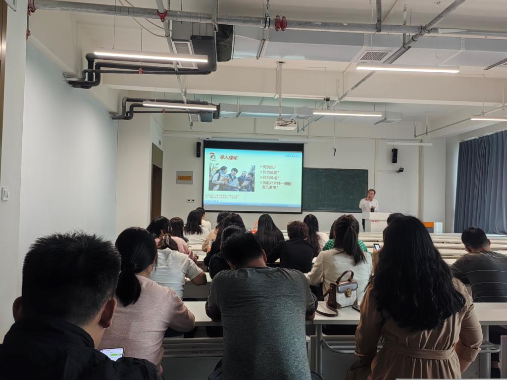 电气工程教研室魏惠敏老师示范讲解了《新能源发电技术》中风能和风力发电的相关知识点,采用多媒体进行授课,课件制作中采用了精美的配图,并配合视频和相关企业资料。魏老师示范讲解之后,老师们针对讲解内容发表各自看法,进行教学交流。